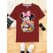 Adorable maroon kids’ t-shirt featuring Minnie Mouse with a big pink bow, surrounded by colorful flowers. A charming and cheerful design that adds a touch of Disney magic to everyday outfits.