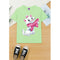 Adorable Sea green kids’ t-shirt featuring a sweet white kitten holding a big pink bow with a matching hair bow. A charming and playful design perfect for little animal lovers